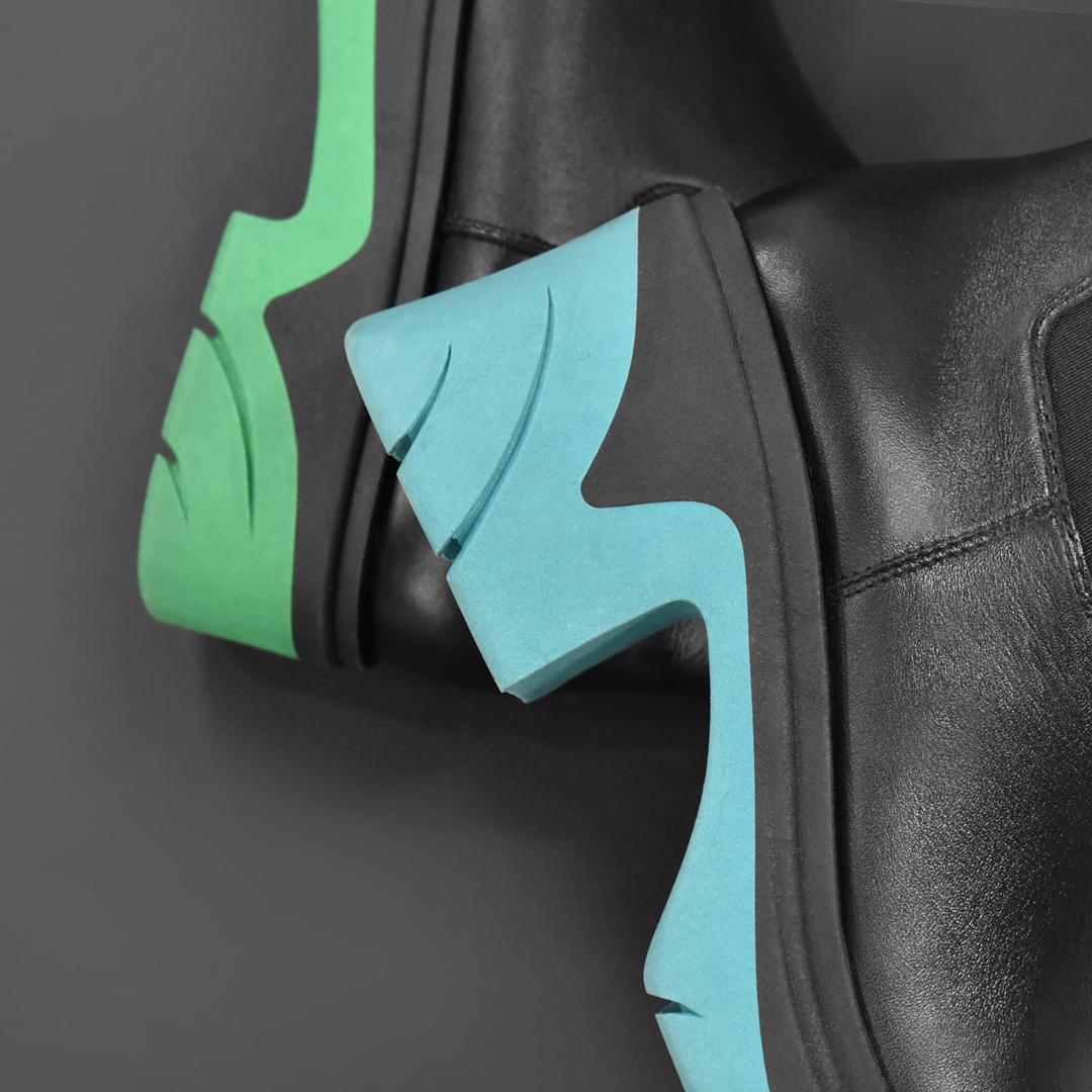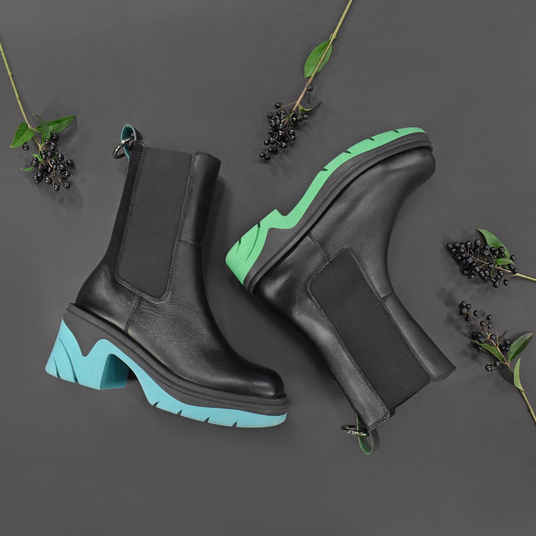 Один из самых заметных трендов - сочетание минималистичного черного верха и яркой, буквально бросающейся в глаза, цветной подошвы. Кроме модных мотивов, эти модели также не лишены удобства и практичности: утолщенные тракторные подошвы и устойчивые массивные каблуки, натуральная гладкая кожа в качестве материала верха, универсальный чёрный цвет.